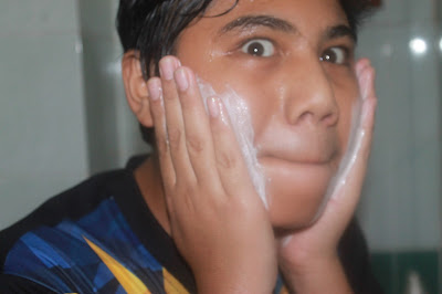 Basahkan dengan sedikit air di telapak tangan. Seterusnya membersih lembut pada seluruh muka.